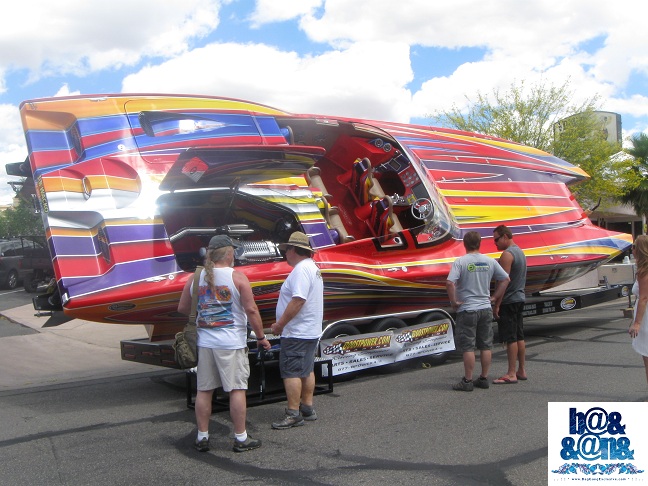 Here’s a look at BagGangExclusive.com in Lake Havasu, AZ at the Desert Storm Performance Boat Event with Bag-Gang Model Angel Roselle as she represented MavTV in the event. A Special Thank You to Nigel Hook the Pilot of the 77 Lucas Oil. Also in attendace was a host of prestigious Pleasure Boots on display at the event.